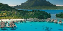 Días 12-13. Bora Bora. Estancia en la isla favorita de Polinesia Francesa. Bora Bora tuvo un origen volcánico y el gran volcán del que surgieron sus tierras hoy está cubierto por un lago de aguas cristalinas. Durante estos dos días completos podremos realizar sknorkel, nadar con rayas, peces multicolores, tortugas y tiburones, recorrer la Isla con pequeñas embarcaciones o veleros, visitar el parque marino Lagoonarium o bien realizar un trekking hasta lo alto del Pahia. Noches en Bora Bora.